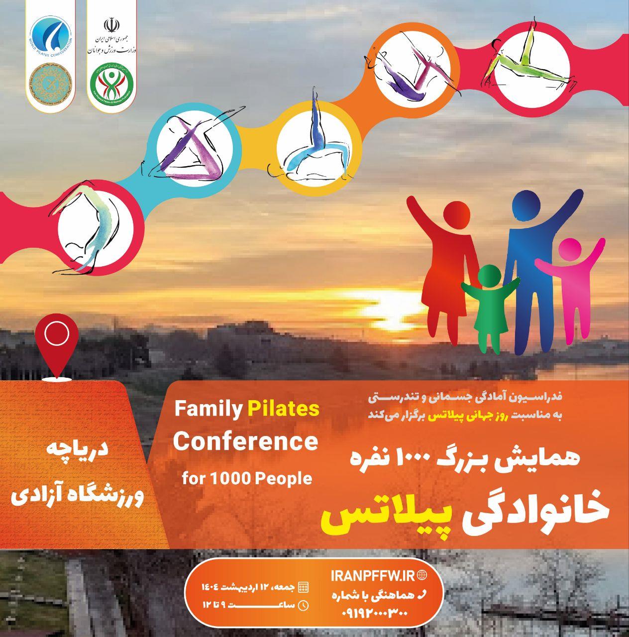 به گزارش روابط عمومی فدراسیون آمادگی جسمانی و تندرستی، ایمان متقیان نژاد با اعلام این خبر، افزود: قرار است دوازدهم اردیبهشت ماه سال جاری از ساعت ۹ تا ۱۲، همایش بزرگ ۱۰۰۰ نفره خانوادگی پیلاتس با حضور آقایان، بانوان و کودکان در محوطه زیبای دریاچه آزادی مجموعه ورزشی آزادی تهران، برگزار شود و با نمایش پدل برد در دریاچه همراه خواهد بود که جذابیت فراوانی برای علاقمندان دارد.
